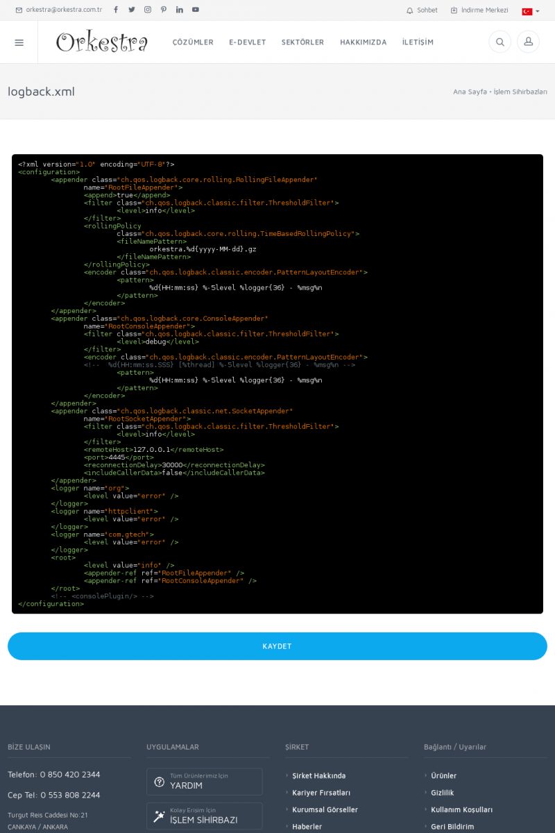 | 64 |  | logback.xml, İşlem Sihirhazı Sayfasılogback.xml başlıklı işlem sihirbazı sayfasına buradan erişebilirsiniz. logback.xml hakkında data fazla bilgi için bu sayfayı ziyaret ediniz. KISA ERİŞİM KODU : XYCML / ARA64 | |