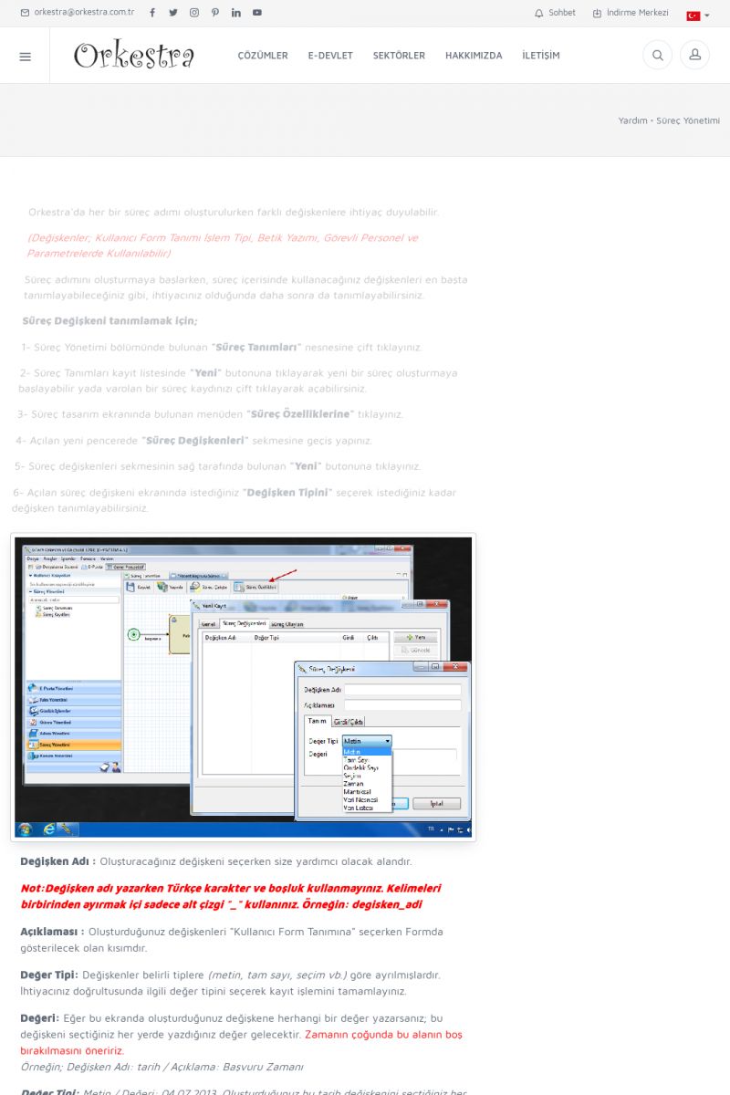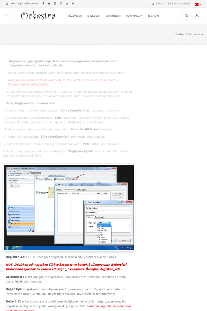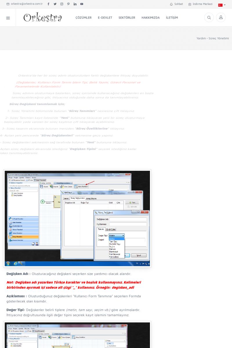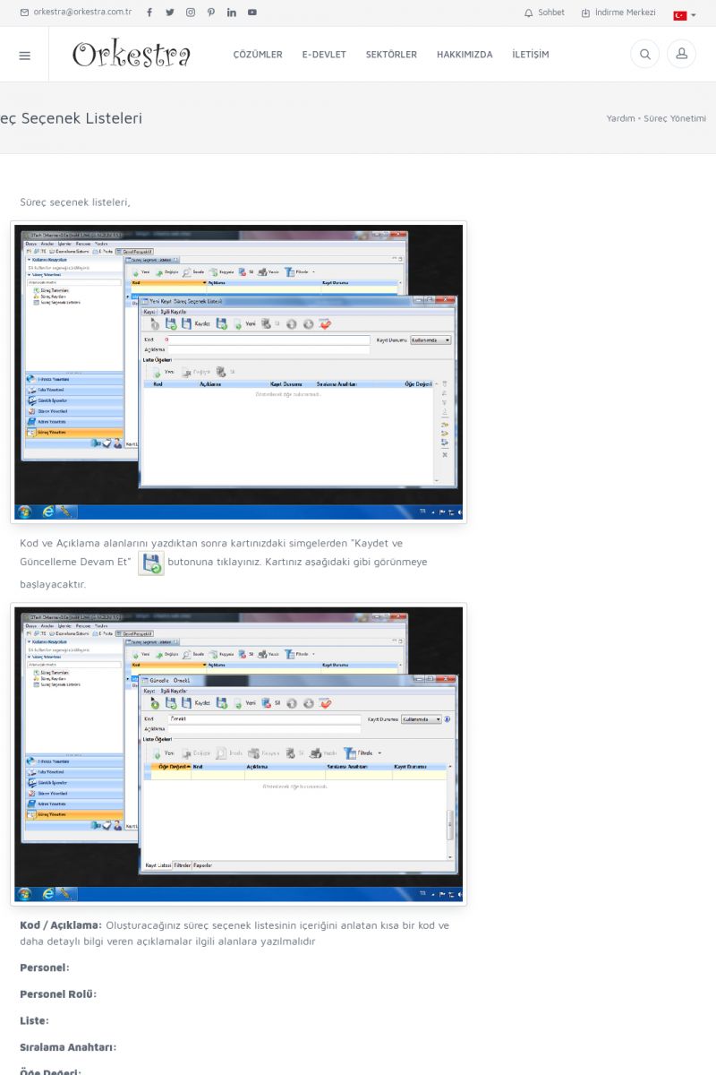 | 95 |  | Süreç YönetimiSÜREÇ NEDIR? Detay İçin Tıklayınız [/index.php?sayfa=yardim&m=26&y=510] SÜREÇ KAYITLARI Detay İçin Tıklayınız [/index.php?sayfa=yardim&m=26&y=511] SÜREÇ SEÇENEK LISTELERI Detay İçin Tıklayınız [/index. KISA ERİŞİM KODU : XYDRP / ARA95 | |