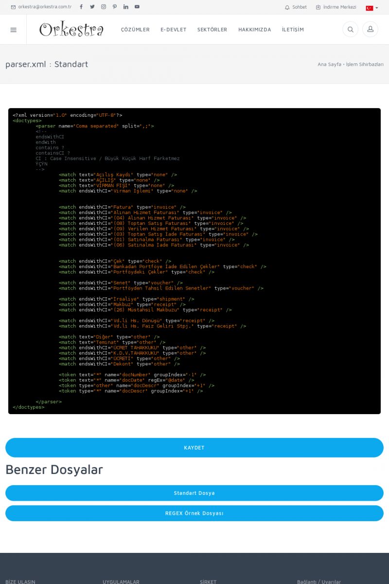| 67 |  | parser.xml : Standart, İşlem Sihirhazı Sayfasıparser.xml : Standart başlıklı işlem sihirbazı sayfasına buradan erişebilirsiniz. parser.xml : Standart hakkında data fazla bilgi için bu sayfayı ziyaret ediniz. KISA ERİŞİM KODU : XYCPO / ARA67 | |