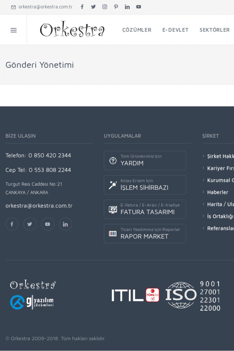 | 14 |  | G Yazılım Ulaşım, Orkestra Ulaşım Şirket Hakkında [/index.php?sayfa=hakkimizda]Tarihçe [/index.php?sayfa=sirket_tarihce]Kurumsal Görseller [/index.php?sayfa=sirket_kurumsal]Ticari Bilgiler [/index.php?sayfa=sirket_ticari]Harita/Ulaşım [/index.php?sayfa=ulasim]Referanslar [/index.php?sayfa=referanslar] ADRES ----------------------- KISA ERİŞİM KODU : XYOG / ARA14 | |