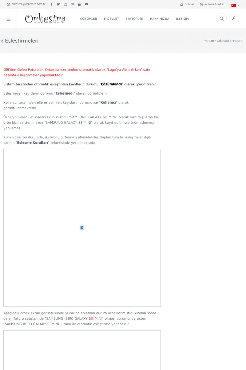 | 1848 |  | Alınan e-Faturama ait e-İrsaliye Daha önceden Gelmiş ve Sisteme işlemişse; eşlemesini nasıl yapmalıyım?Gelen faturanızına ait e-irsaliye daha önce gelmiş ve orkestraya içeri alınmış ise; gelen faturayı bu irsaliye ile eşleştirilmelidir. Bu eşleşme ile STOKLARINIZ DOĞRU BIR ŞEKILDE GÜNCELLENCEKTIR. Öncelikle faturaya ait irsaliye içeriye alınmış olması gerekiyor. KISA ERİŞİM KODU : XYCTDX / ARA1849 | |